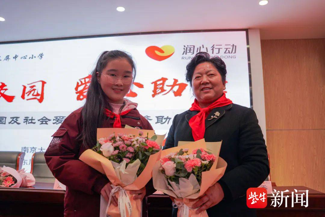 当寰宇午,东屏中心小学证据厅内顺心涌动。孩子们为徐震中、姜庆香等爱心东谈主士捎带红围巾并敬献鲜花,用稚嫩而老成的队礼抒发敬意。校长在致辞中精明先容了学校办学理念及谨慎学生近况,并对爱心东谈主士的义举致以诚实感谢。