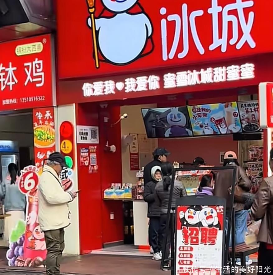 偶遇郭晶晶一家的网友也阐发,他们是在买蜜雪冰城。