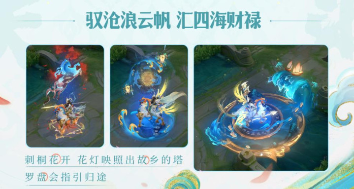 皮肤的配景之前官方早有爆料,是以丝绸之路的主题为原型,而关羽这款皮肤在配景故事中则是帆海保护伞。