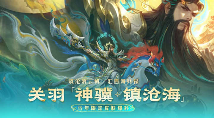 首款爆料的皮肤是关羽的【神骥.震沧海】,光看这个名字就还是很霸气了吧。