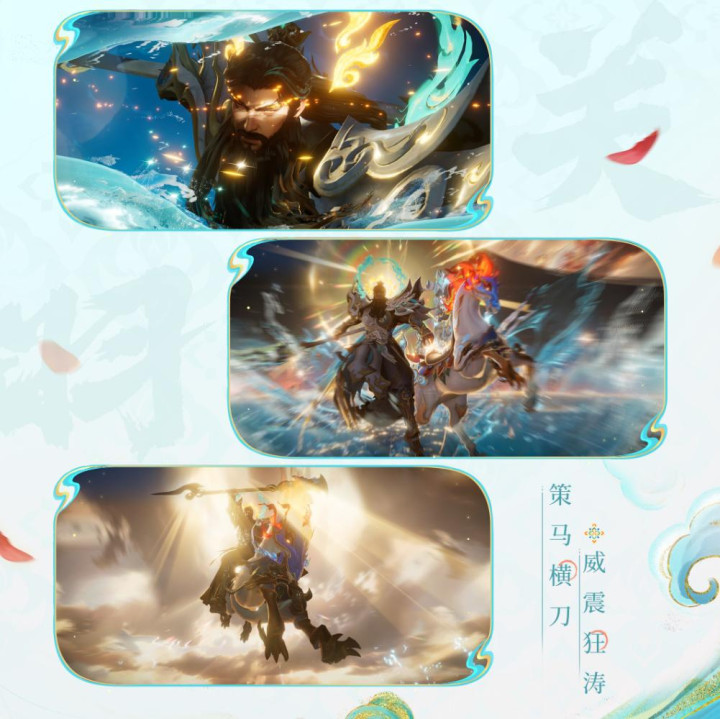 一妙技关羽挥刃横扫,海潮裹带金色的想绪环绕露出,而冲锋景况的一妙技,其实是改了动作的,关羽策马劈开巨浪,这个动作是关羽在马背上跳了起来,同期大刀挥出的斯须,因为较大的动作幅度,死后的披风拖曳的很长,给了咱们一种抬手动作绝顶使劲的嗅觉。