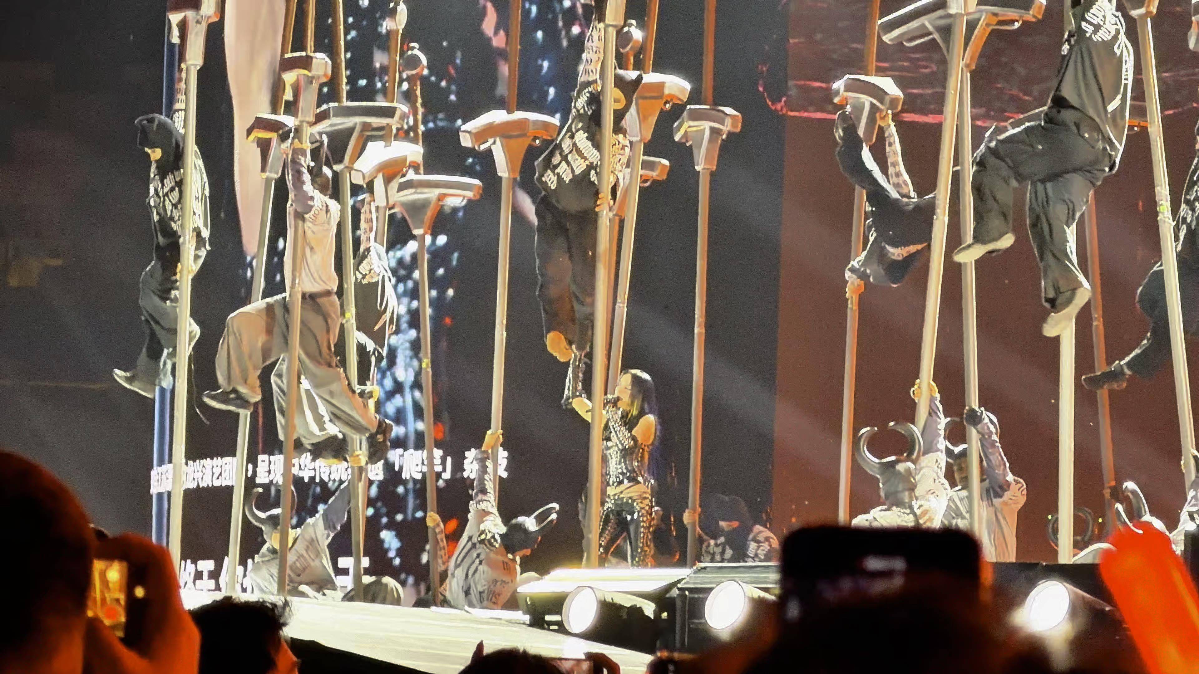 45岁的蔡依林又把演唱会开成了情景级!3月7日、8日深圳大运中心流露场连开两场,《Pleasure》巡演现场径直把2400年历史的非遗爬竿搬上舞台——十米高杆上,演员们像长了翅膀的侠客,空中转体、倒挂金钩、叠罗汉一连串动作游刃弥散,联结《舞娘》的前奏径直炸翻全场。00后粉丝举着灯牌尖叫到嗓子冒烟:“这哪是演唱会?分明横暴遗版《速率与激情》!” 你敢信?这项源自战国时候的“爬竿”绝技,往常只在庙会和杂技团见过,如今被蔡依林团队玩出了赛博一又克感。舞台上那片“剑之森林”安装开云(中国)kaiyun